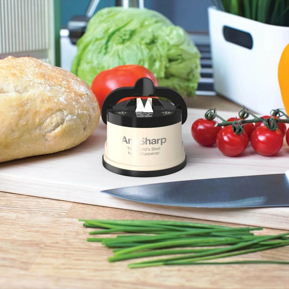 The PowerGrip suction cup base attaches securely to any smooth surface or worktop without the need for any tools. The unit is symmetrical so it works perfectly whether you are left or right handed. AnySharp allows anyone to get professional results without any training at all. Once you have fixed the AnySharp to a work surface, you can sharpen knives easily and safely using just one hand. All you need to do is just gently draw the blade through the tungsten carbide sharpening edges, 3 or 4 times to restore a super sharp cutting edge.