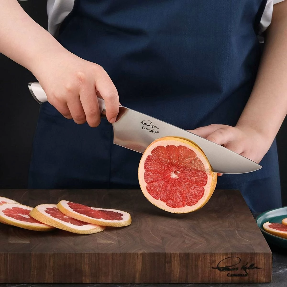 This set includes the two powerhouses of kitchen cutlery, a 3.5″ paring knife and an 8″ chef’s knife. These 2 pieces fit into the luxuriously handcrafted solid walnut wood block adorned with Thomas Keller’s signature, a statement piece for your countertop that will convey your commitment to expert, efficient meal preparation and sophisticated style. Use this set as a starter set for a first time apartment dweller, or supplement your current knife set with these two powerful blades. The true pinnacle of tried-and-tested professional cutlery design, the Cangshan Cutlery Thomas Keller Signature Collection allows the home chef to follow the example of the professionals in the never-ending pursuit of culinary excellence.