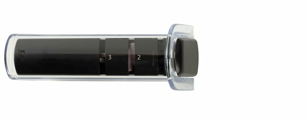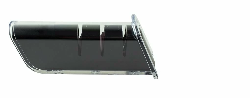 Keep your Kai Blades in pristine condition with the Shun Kai Diamond and Ceramic Retractable Sharpener. This sharpener comes preset to a 16° angle, designed for double-bevel and straight-edged knives. This simple-to-use sharpener has three slots, the first for rough sharpening, the second refining, and the third for finishing. This sharpener comes with a retractable cover for compact storage, and a 5-Year Limited Warranty to guarantee you can protect your cutlery for years to come.