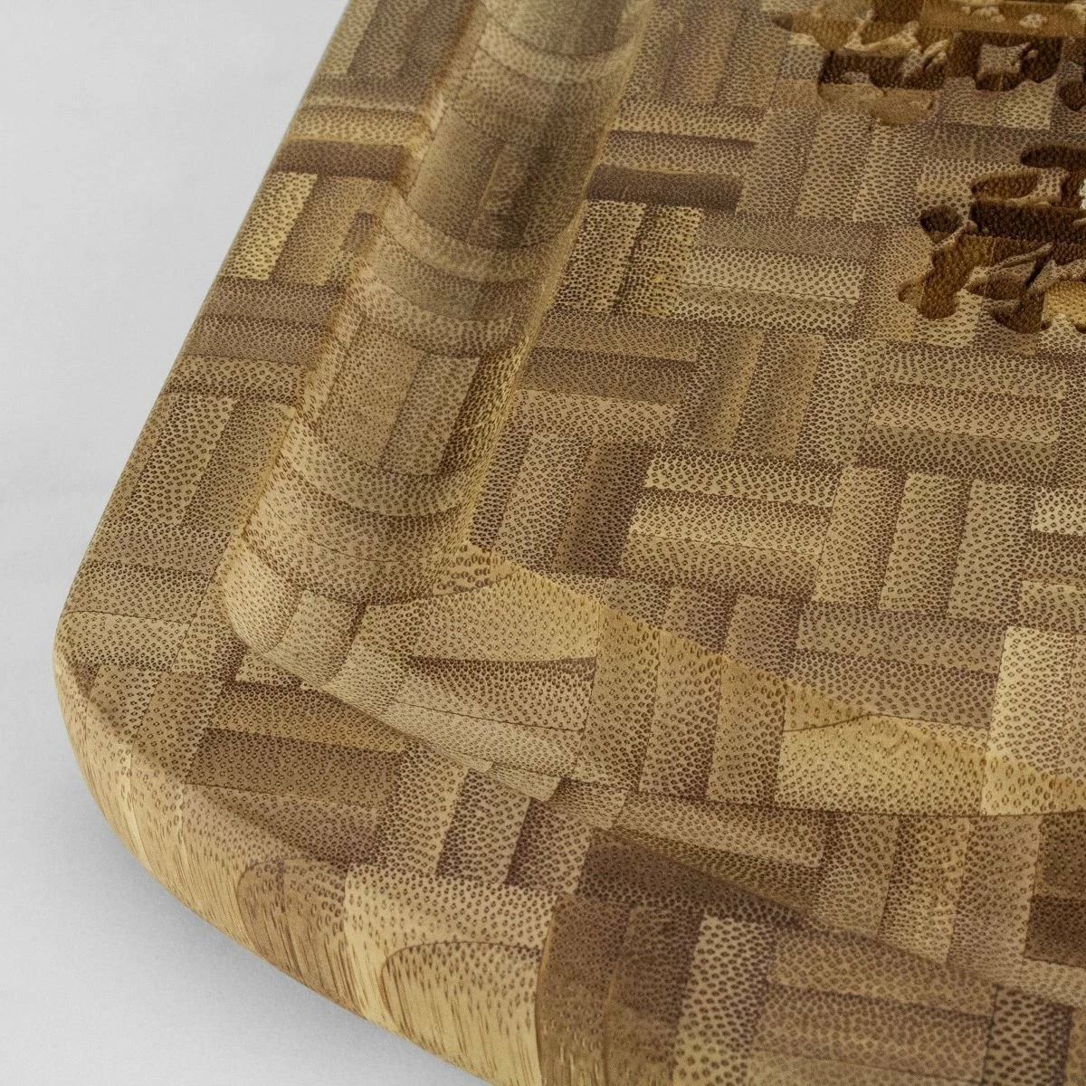 This cutting board is the perfect size for both large vegetables and meats, especially roasts and whole poultry. And the stylish, classic, laser-etched tree pattern shape makes it great for serving as well as cutting! Made of durable, organically grown bamboo, this board is naturally anti-bacterial, so you know it’s especially safe for cooking. This carving board also features corrugation along the etched family tree, not just for show! These shallow canals direct juices toward the generous juice grooves around the edges of the board, which trap meat, fruit and vegetable juices, saving you on messes to clean up! The end-grain bamboo material used is more durable than other grain cuts, and very gentle on knife edges, but should have mineral oil applied more frequently, about every two or three weeks. Bamboo products made by Totally Bamboo are made ethically for the entire planet. It grows quickly in rows that provide more oxygen than a similar-sized area of trees. The bamboo the company uses also is not part of the Panda’s diet and is naturally strong and long-lasting! For best cleaning results, simply wipe clean and let it air dry. Do not soak or place in dishwasher.