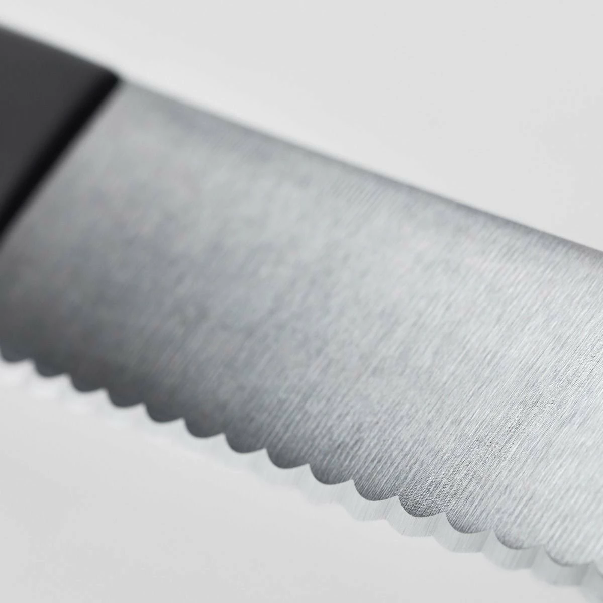- Serrated edge blade has small, saw-like teeth to slice cleanly through food with delicate textures without damaging soft insides
